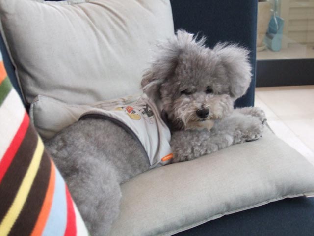 院長先生と一緒にお昼寝してたのに、「お仕事にいってくるからね」っておこされてしまいました。まだねむたいのに・・・ちょっとねぼけた顔でごめんなさい。