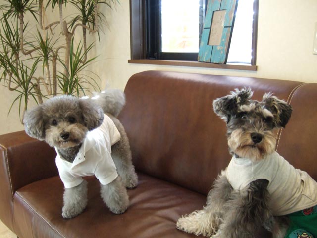 cuccia(クッチャ)に秋物の洋服を買いに行きました。可愛いのがいっぱいあったヨ!! 今日ボクが着てるのも買ってもらったんだ…似合うでしょ☆ Luke(ルーク)と一緒に写真を撮ってもらいました。Lukeとお友達になれそ〜!! また遊びに行くね。