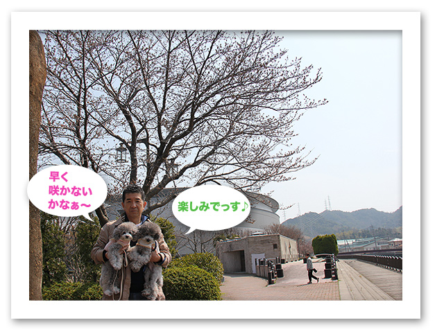 僕たちのお散歩道の桜、まだ少ししか咲いてないでっす✨