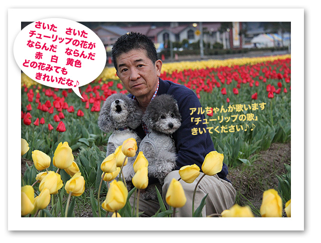 ママちゃんチューリップたっくさん摘んでるでっすよ😊
