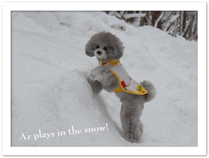 アルちゃん、お鼻に雪ついてるよ😊