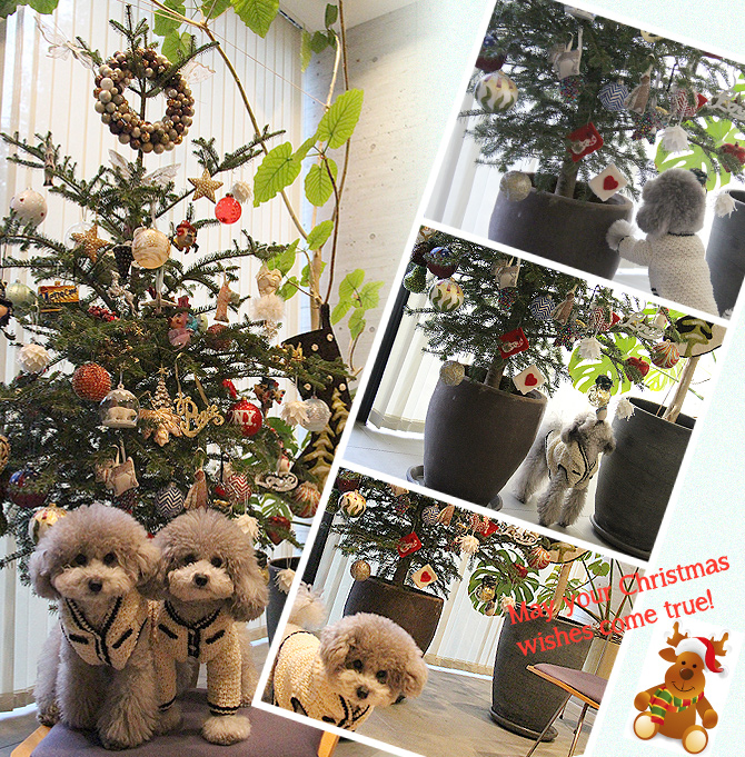 お家の玄関のクリスマスツリー、僕たちもお手伝いして飾ったでっす🎄