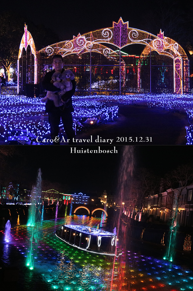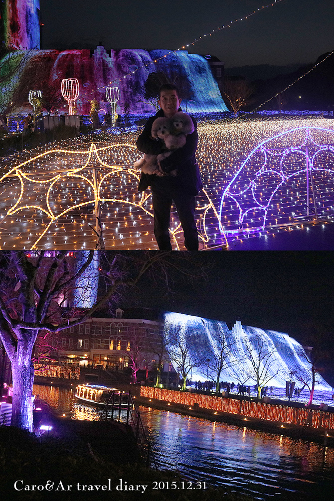 虹色に光る運河、クルーズ船が通るたびに色々な色の噴水が「光と噴水のショー」✨