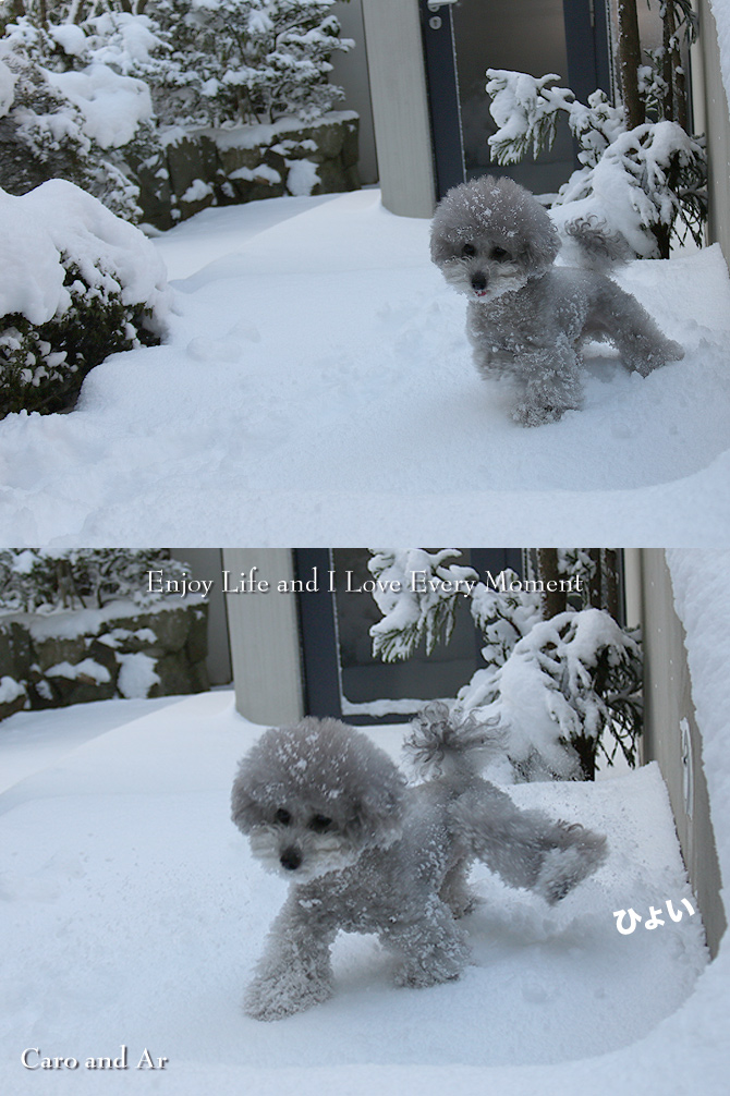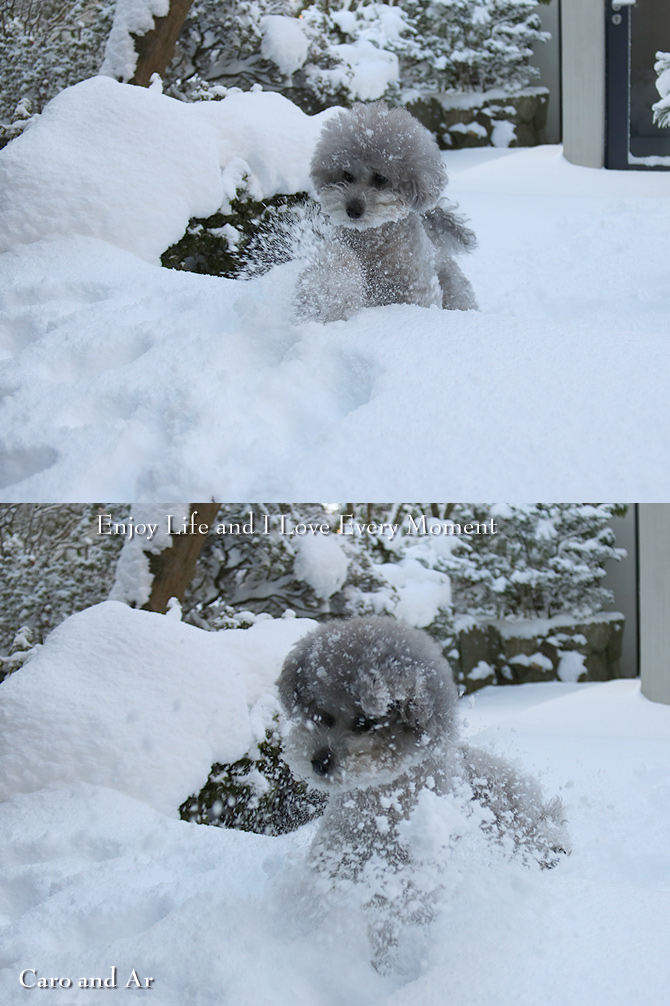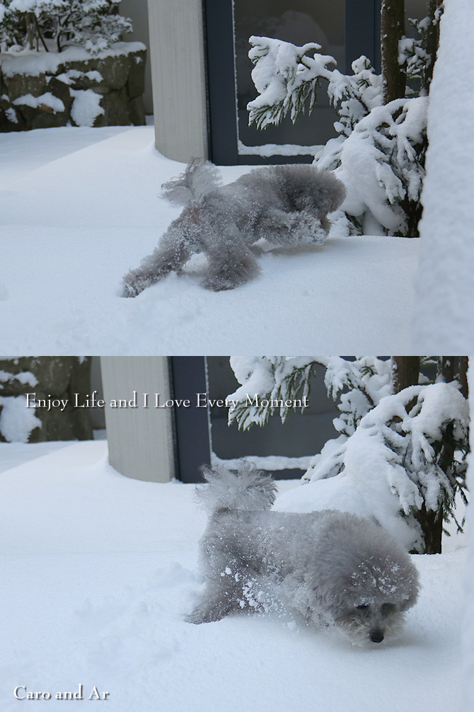 え〜っ❗カーロ、真っ白なお庭に突撃〜〜💨