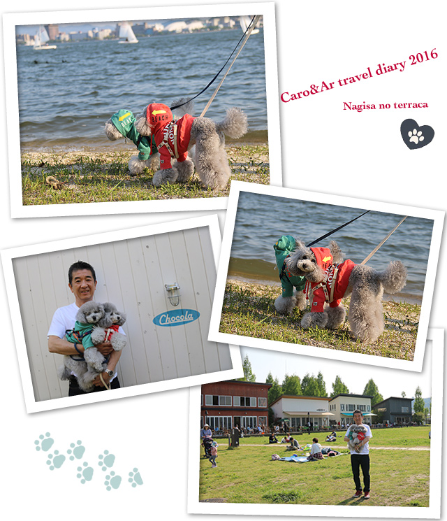 カフェの前にひろがる広〜い芝生と琵琶湖😊