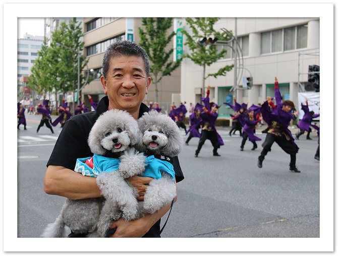 朝から賑やかに、太鼓の音やよさこい踊りの鳴子の音が鳴りひびいて・・・盛り上がっている様子🥳