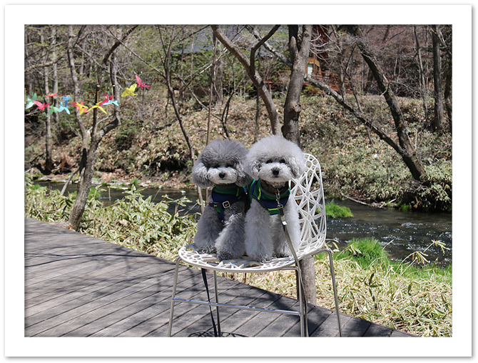 川辺のデッキ‥‥川のせせらぎを聞きながら