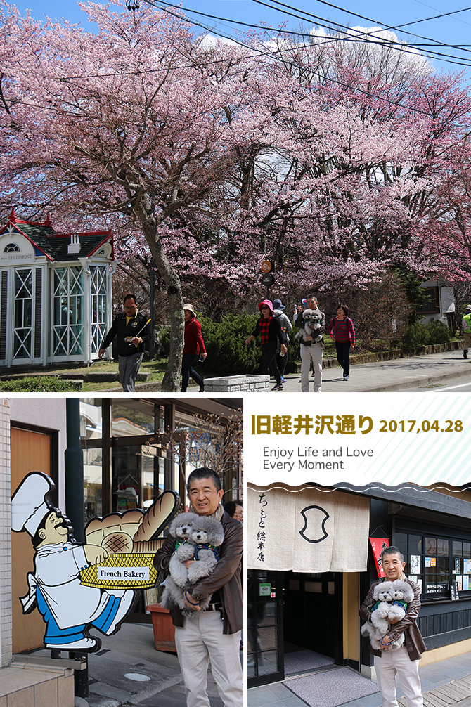 軽井沢銀座の入り口には満開の桜
