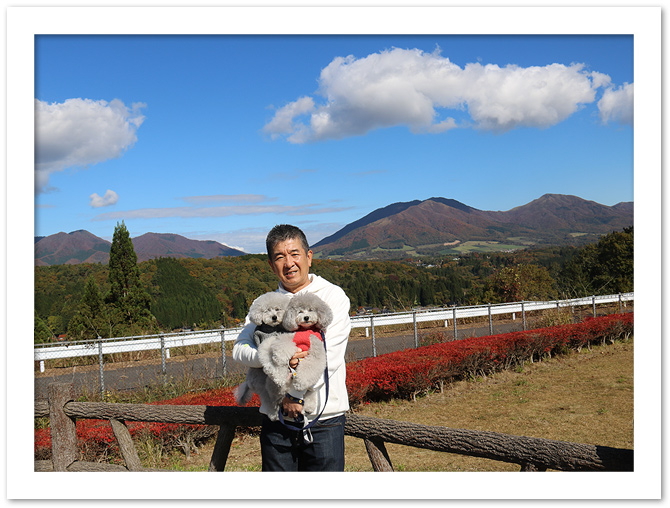 山の紅葉と綺麗な青い空と真っ白な雲‥‥絶景です✨